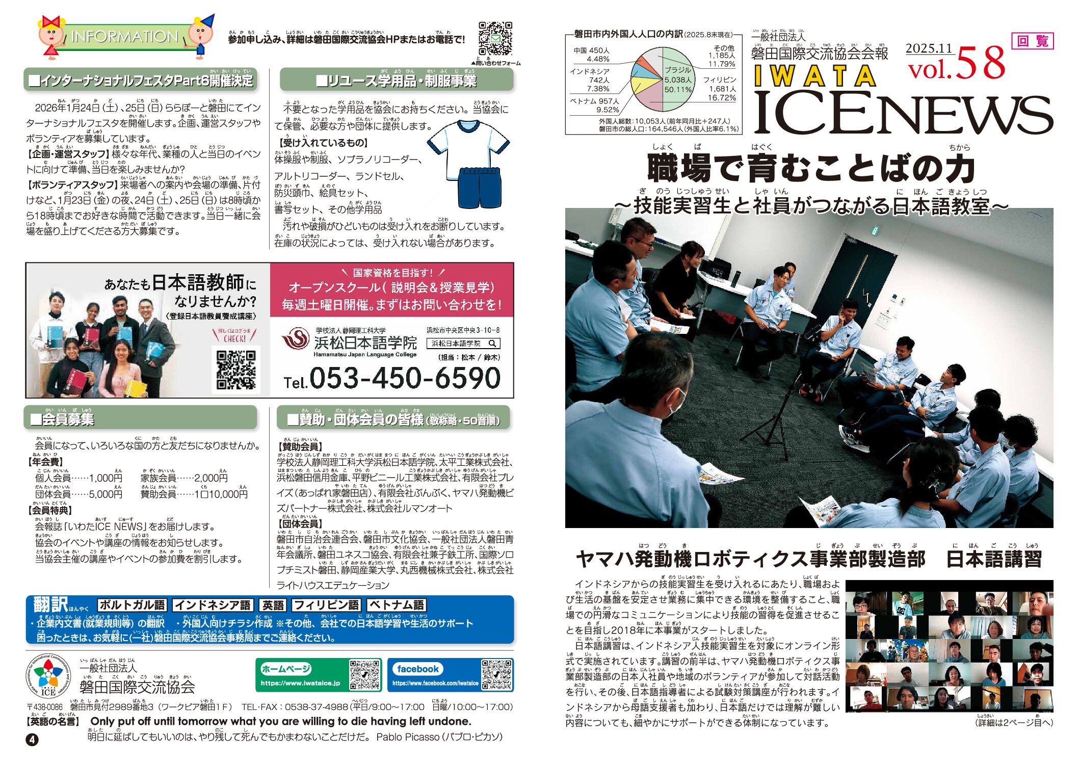 また、磐田国際交流協会で長年活躍され、当協会にとっては要となっていた鈴木ゆみ前事務局長が(公財)静岡県国際交流協会の地域日本語教育総括コーディネーターとしてご活躍されることとなり、私たちにとっては大きな転換期を迎えることとなりました。